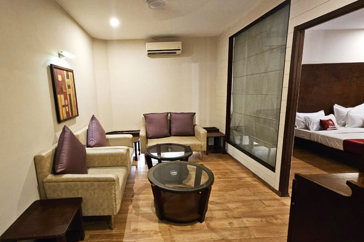 Indulge in luxury like never before in our beautifully appointed Suite Rooms. Featuring a separate living area, king-size bed, and stylish interiors, each suite is designed for guests who desire extra space and exclusivity. Perfect for families or business travelers, it offers personalized comfort, refined elegance, and a relaxing environment that elevates your stay to a premium experience at Saluja Residency.